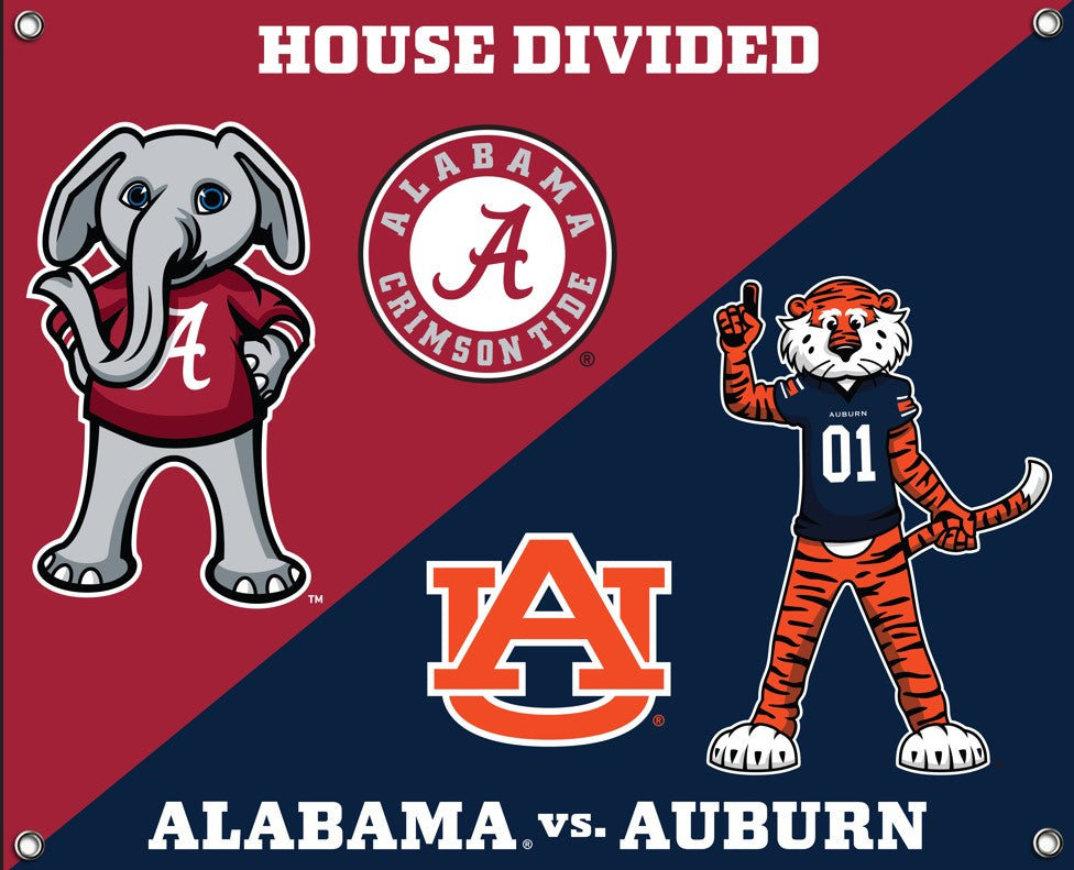 ALABAMA-AUBURN HOUSE DIVIDED SPIRIT BANNER-36"X 43"-5004AL-AU