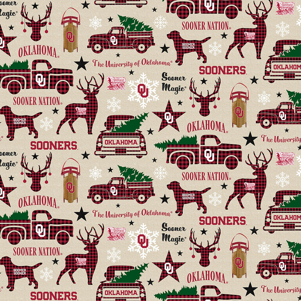 UNIVERSITY OF OKLAHOMA-Christmas Allover-100% Cotton-OU1213