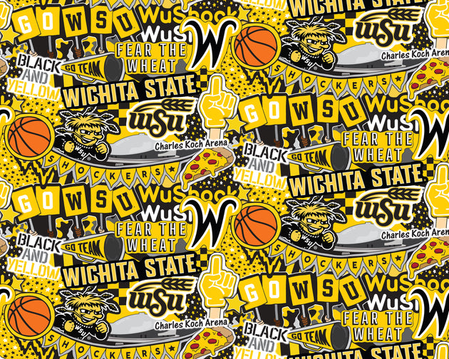 WICHITA STATE UNIVERSITY-Doodle Panel Designed by Sammy-100% Cotton