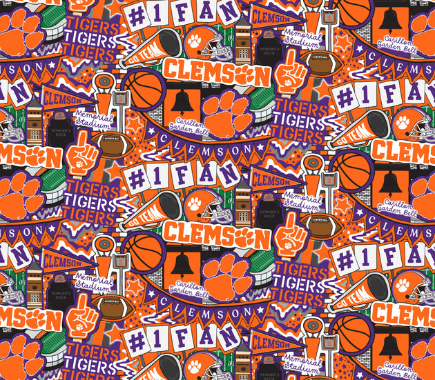 CLEMSON UNIVERSITY-Doodle Panel Designed by Sammy-100% Cotton