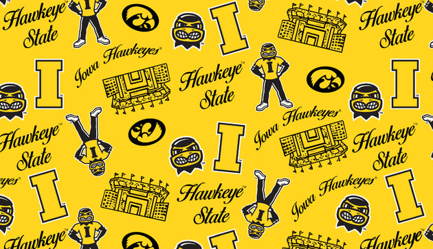 UNIVERSITY OF IOWA -Wide Back all over print-100% Cotton-107"/108" width- IA1395