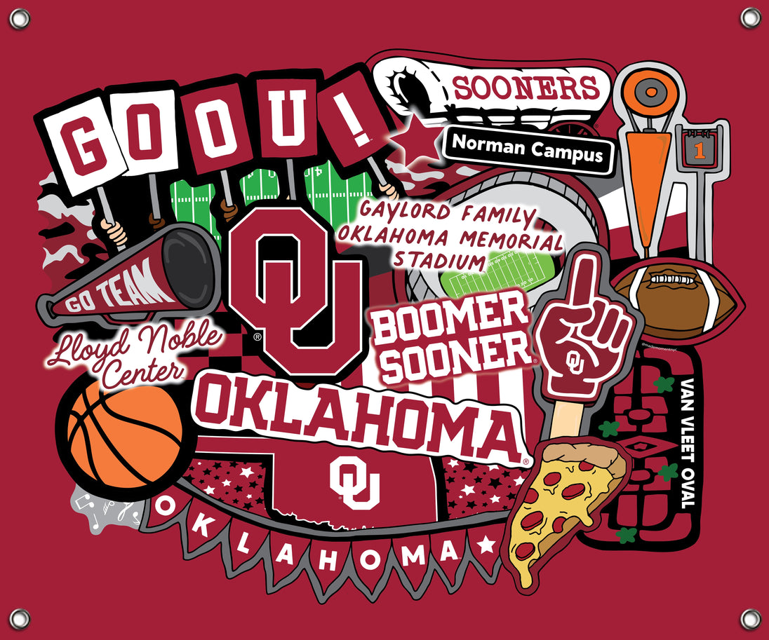 UNIVERSITY OF OKLAHOMA DOODLE SPIRIT BANNER-58" X 47"- OU5002