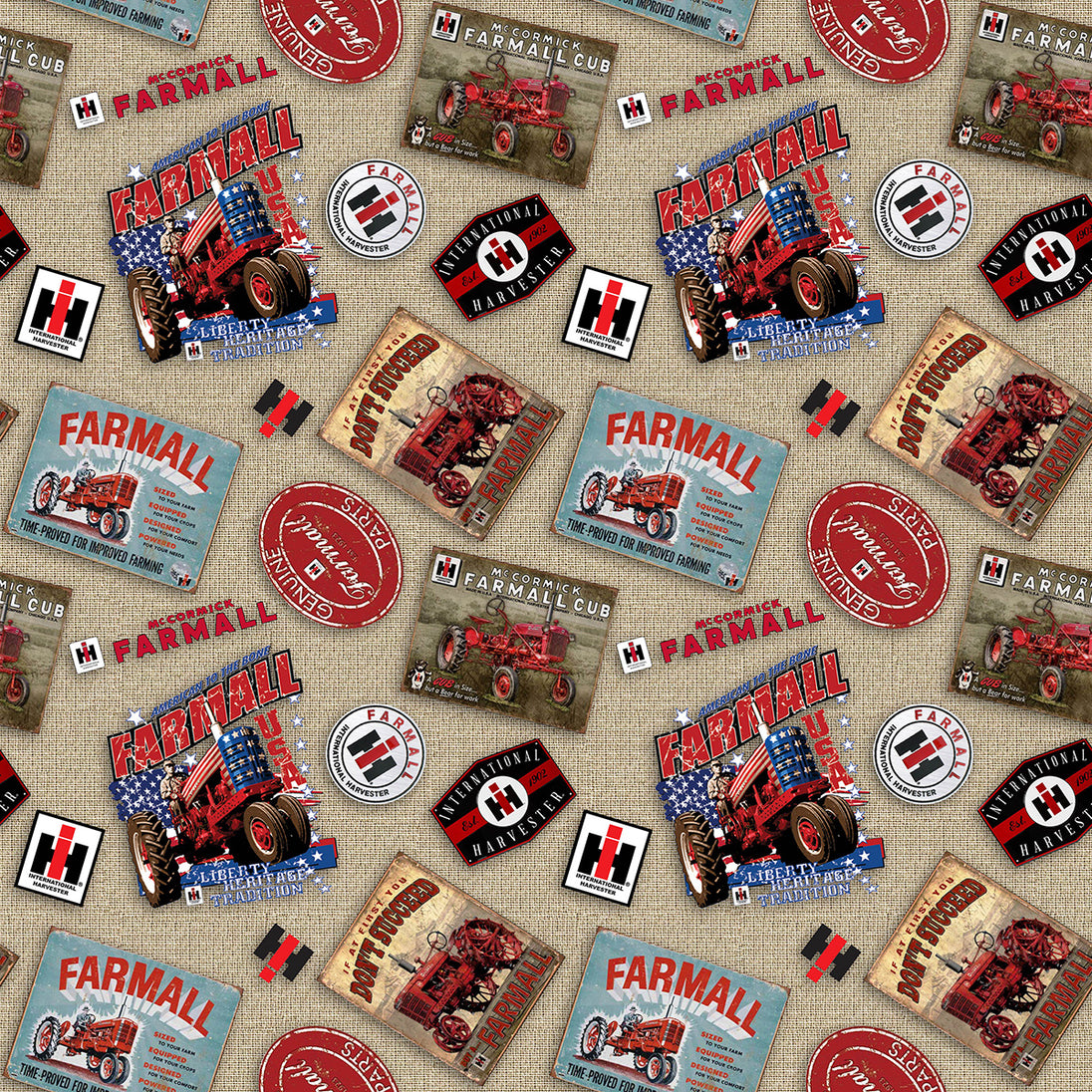 Tossed Farmall Logos 2 Burlap 10528