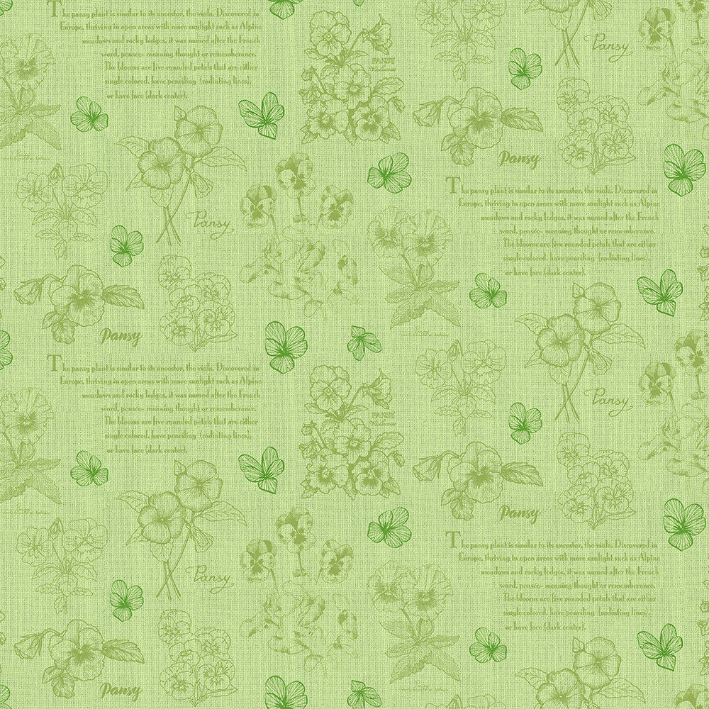 10377-PANSIES TOILE SAGE Cotton